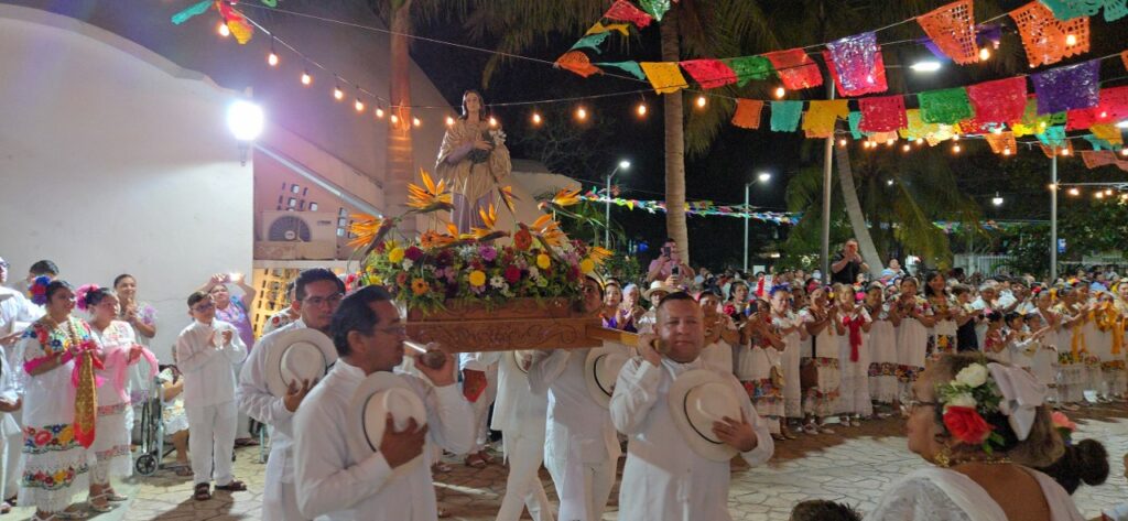 Entre las actividades culturales, destacó la participación del mariachi Kukulcán en la serenata y la proyección de la película sobre la vida de Santa María Goretti en el atrio parroquial, lo que congregó a familias enteras en un ambiente de fe y convivencia.