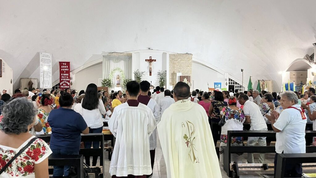Mérida, Yucatán, 27 de junio de 2025 – Con gran fervor religioso y un ambiente de fraternidad comunitaria, dio inicio la Fiesta Patronal 2025 en honor a Santa María Goretti, bajo el lema “Testimonio de Comunión”. La jornada inaugural incluyó la tradicional bajada de la imagen y la celebración de la Santa Misa a las 7:30 de la noche, animada por el Ministerio de Alabanza “Jesucristo Sumo Eterno Sacerdote“.